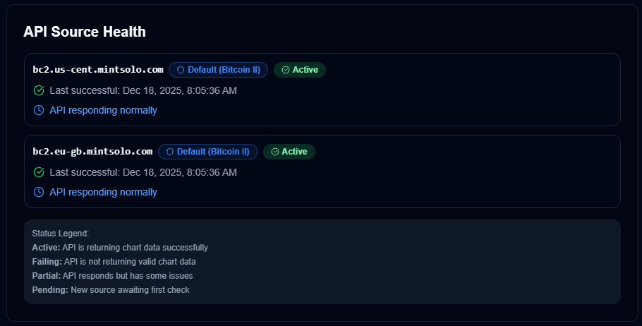 Once your miner is connected to any of the above pools, you can check on the status of your miners from within the MintSolo Solo Mining Dashboard using any web browser on any device. Just point your browser to http://stats.mintsolo.com .